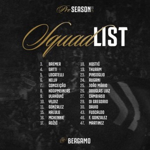 尤文对阵亚特兰大名单:弗拉霍维奇领衔,洛卡特利、冈萨雷斯在列